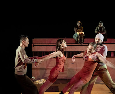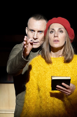 Zinnie Harris pjäs Hålla Andan inspirerades av flyktingarna som riskerar livet för att ta sig över Medelhavet, och trots den drömska Faust-inramningen visar den trovärdigt och inkännande hur desperationen kan driva någon till att förnedra sig och ta stora risker. Detta beror mycket på hur väl Nina Zanjani och Ana Gil de Melo Nascimento framställer systrarna Dana respektive Minnie och deras täta gemenskap. Jonas Malmsjö lyckas väl med att hålla sina manér i schack även när han låter Jarrons känslor svalla som störst. Jag tycker om att demonen varken är skriven eller regisserad som entydigt ond; ibland vacklar hans självkänsla och i den stiliserade brottningsmatchen med Dana verkar de båda länge jämbördiga. Kring huvudpersonerna kretsar bifigurer vars karaktär drar uppsättningen mellan drömspel och realism på ett givande sätt: Simon Norrthon, Hulda Lind Jóhannsdottir, Douglas Johansson, JoaQuin NaBi Olsson och Giovanni Bucchieri. Scenen är en listigt konstruerad trälåda som kan föreställa just vad som behövs för stunden.